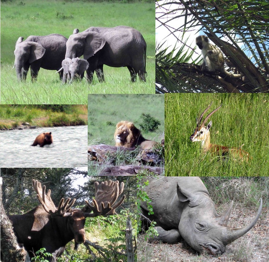 I don’t have to get wet to have fun. Here’s the proof. The rhino’s not dead, but it’s a sad fact that quite a few people would like to change that state of affairs to get his horn. The bear is blurred, but that’s because my hands were shaking.